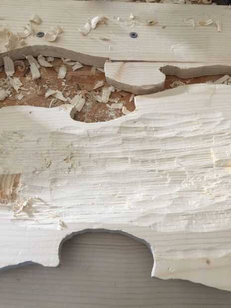 Cortar los negativos de la Junta y tornillo en la tabla (ver fotos). Si usted nunca ha usado cinceles antes de que practico un montón en poco trozo de madera antes de ir derecho en cincelar. Una vez confiamos en ti habilidades cincelar poner el espacio en blanco de madera en el soporte e ir en él! Yo comentar todo el camino así que no tiene muchas medidas. Pro tip: el arce es una madera muy dura y densa por lo que necesitarás usar el martillo constantemente en contraste el abeto es muy suave. Rara vez se utiliza un martillo en él tan go especialmente lento en las piceas.