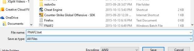 Guarde todos los archivos y que cualquiera que sea que quiera, pero asegúrese de que termina en .bat