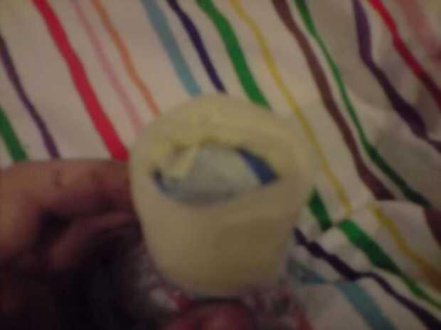 Después de que hayas hecho esto, empezar a envolver cinta alrededor de la tapa de la botella, por lo que se pega hacia fuera. ALOT! Luego se corta la punta que sobresale cada 5mm más o menos y todos los dientes de"abajo" Luego cubrir completamente con más cinta adhesiva, asegurándose de que su como como posible.