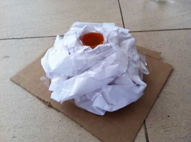 Añadir más papel como sea necesario hasta que se ve como un volcán.