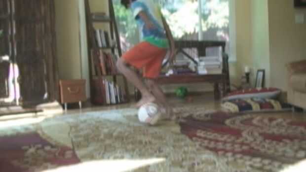 mantener la bola en que manosPaso 1: Doblar ligeramente la espalda hacia adelantePaso 2: Apuntar el pie hacia abajo Tienes que bloquear el pie apuntando hacia abajo y poner la tensión en él.Paso 3: Suba la pierna recta subir la pierna y seguir rectoP