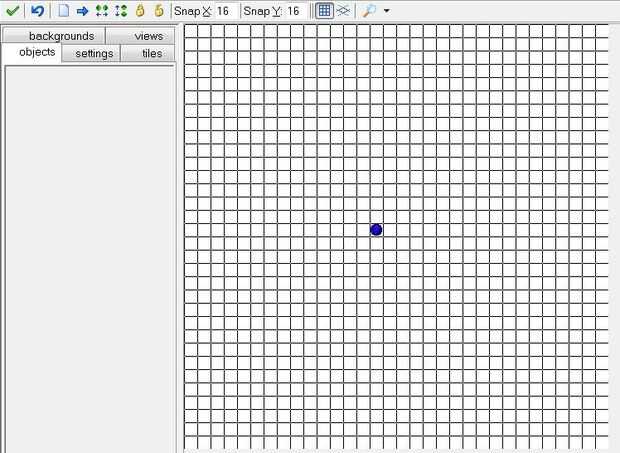 Crear una nueva sala. Asegúrese de que está seleccionada la pestaña de 'Objetos' a la izquierda y coloque el objeto. Debería aparecer un cuadrado azul con un signo de interrogación, como esto no tiene ningún sprite asignado a él. Pulse la marca de verificación verde en la parte superior izquierda y ejecutar el juego normalmente (F5). Felicitaciones, usted debería ver una ilusión agradable!