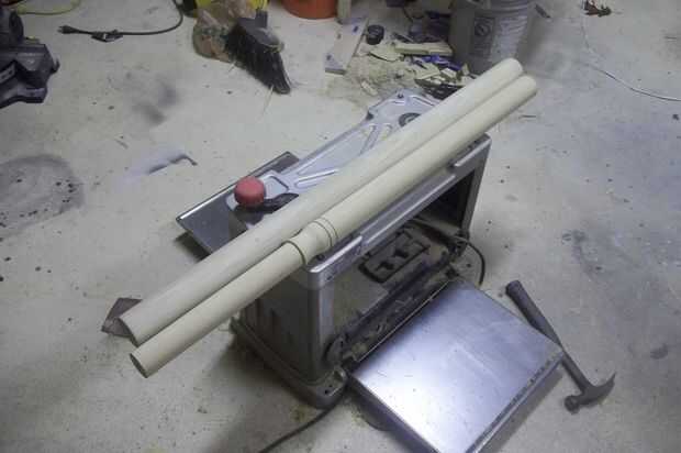 Después de que los postes fueron acabados, cortar muescas en ellos para ajuste junto donde se cruzan para hacer un empalme a la mitad. Ellos no se pegan todavía, aunque.