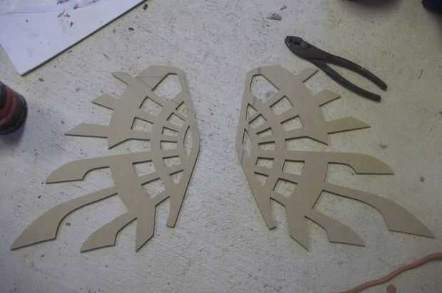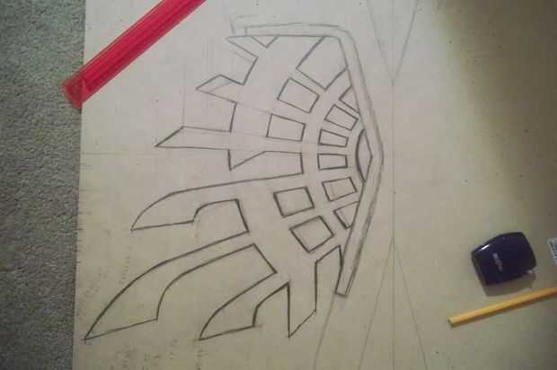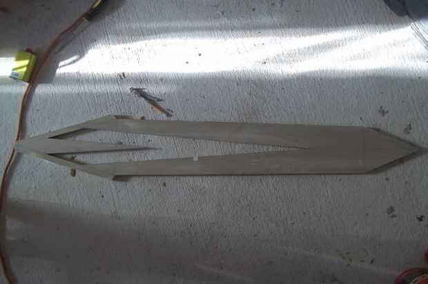 A continuación, recorta el diseño de la espada de pino de 3/4 de pulgada con el borde extra de madera y cortar la ranura en la parte superior de la llave espada para él.