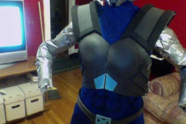 7. de allí, comenzar a añadir sus datos. Cuando estaba pensando en mi vestuario, yo quería el pecho formando una "X" (para el Xforce basado en una de las figuras de acción). es que por eso he añadido unos tirantes. (Foto 5).