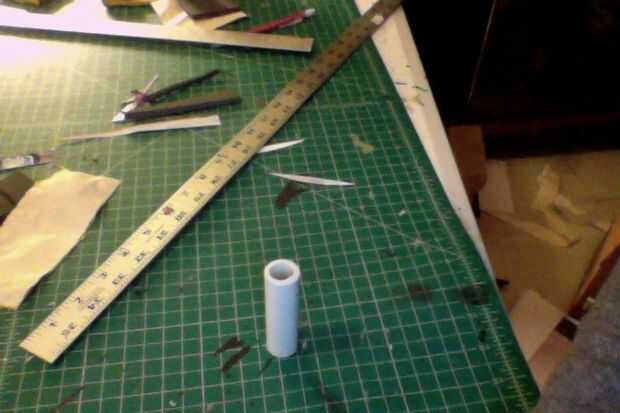 1. en mi diseño, quería mi Cable que una tonelada de balas por todas partes él. Después de todo, él es un soldado luchando continuamente en guerra. Tomé mi tubo de PVC y corte a medida. (Foto 1)