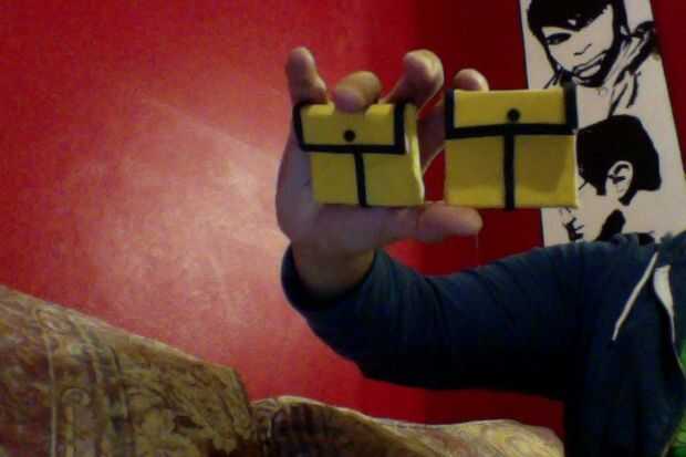 1. mi Cable tiene un montón de bolsillos. Para ello, empezar por cortar un pequeño rectángulo (marcado A). entonces las necesidades de bolsillo un "labio"(Labeled B), será tan amplio como pieza "A", pero más corto que la altura del labio. Envuelva las piezas A y B en la tela amarilla (etiquetado como C + D) (foto 7)