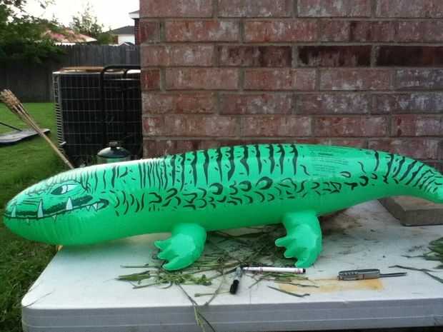 primero se necesita un marcador negro y un marcador rojo y un cocodrilo inflable yo tengo la mía de dólar árbol así en todos lo habría costó 1.50.