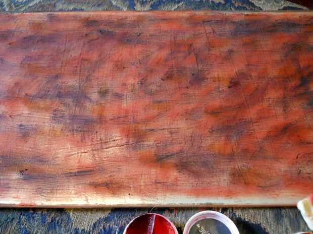 Una vez todas las capas se hacen y en seco, tomar el rojo, marrón, rosa y