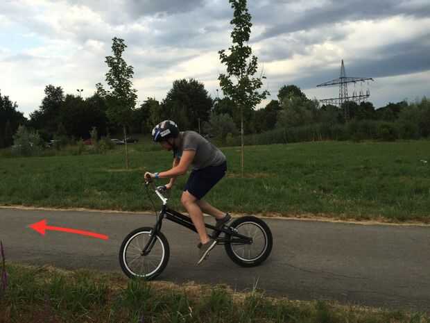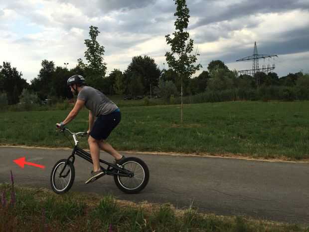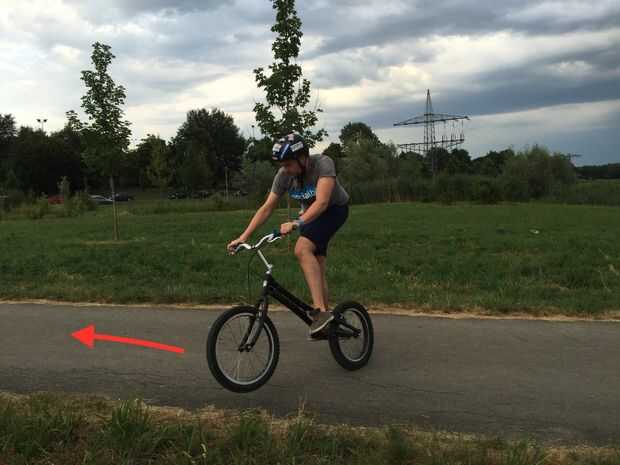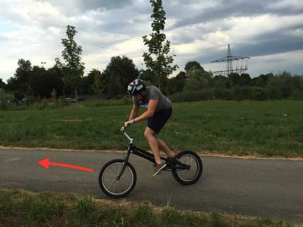 Cuando estés a punto de terminar su rotación de 360 °, comienzan a empujar los pedales un poco para evitar que usted y su bicicleta para hacer girar otro 360 °). Usted tenga que inclinarse un poco porque de lo contrario caería de su bicicleta. Pasará pasados 10-20 º mientras que conduce adelante otra vez. Esto es necesario para tener un save del aterrizaje.