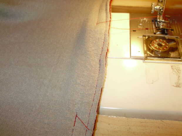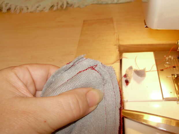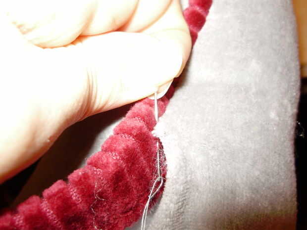 Ir en el medio donde ya ha cosido con máquina y anudado coger hilo y aguja una pequeña cantidad de tejido en un lado y luego una pequeña cantidad de la otra, esto se hace sin ver la aguja de 3 a 4 puntadas luego jale a y hacer otra vez... hacer esto hasta el final (algo así como una puntada corriente oculta o puntadas de quilting) hacer un nudo en la aguja final y empuje a través de su tela para alrededor de una pulgada para ocultar y asegurar el nudo y listo.