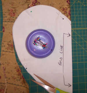 Marca en el extremo plano del corazón patrón, línea de doblez. Esta es la línea que colocará en el doblez de la tela de.