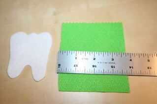 Usted también tendrá que recortar una forma de diente pequeño de fieltro blanco (aproximadamente de 2.5" de ancho por 3" de alto)