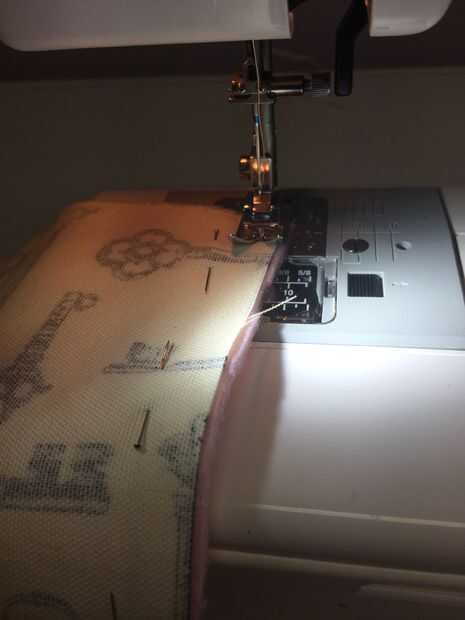 Ahora empezamos la costura... Asegúrese de colocar su pie de presión, a continuación, utilice la rueda de mano para bajar la aguja antes de usar el pedal. A continuación empuje el pedal un par de veces y golpear el botón de reverso para asegurarse de que el principio de su almohada se queda juntos. Siempre que llegar al final en su primer lado Asegúrese de que utilizar la rueda de mano volver a poner la aguja en la tela que usted puede dar vuelta para hacer lo siguiente. Cuando la aguja está en el tejido, levante el pie de presión y gire.