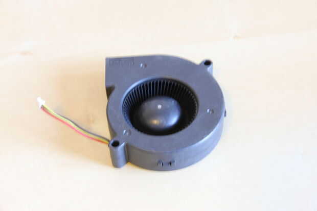 Este es el ventilador centrífugo de uso. Su voltaje de funcionamiento es de 12v y la corriente es de 0.2A.