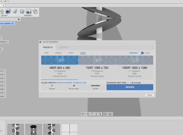 Haga clic en él, y luego puedes jugar con la configuración. Representación tomará mucho más tiempo (piense como 30-60 minutos), pero obtendrá 100 marcos como un mp4 con trazado de rayos!
