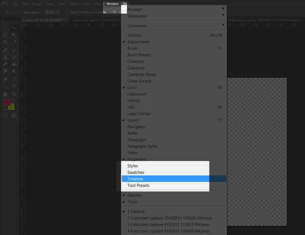 Paso 3: Haga clic en 'Timeline' + crear capas y fotogramas