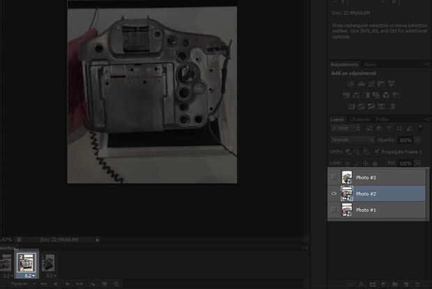 Seleccione su primera foto y colocarlo en capa 1 y asegúrese de que estén en el marco de la línea de tiempo 1