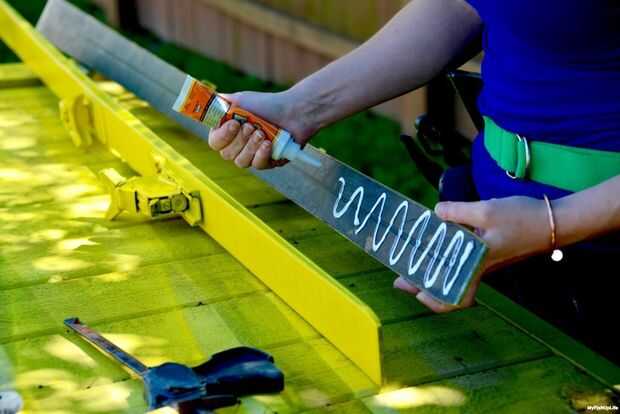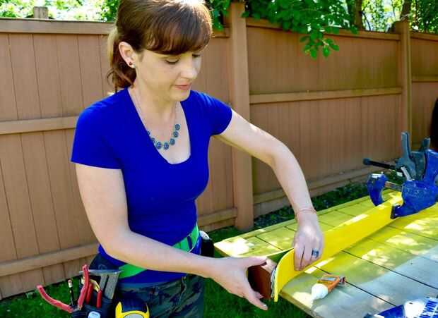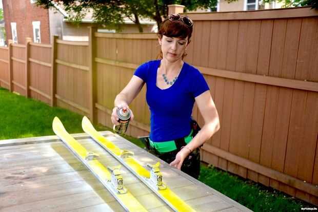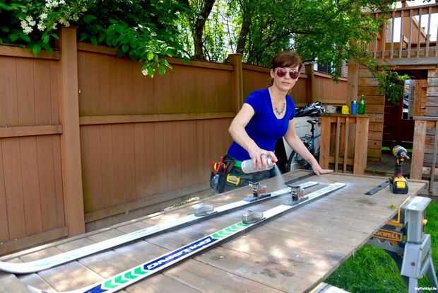 Llevamos a cabo los dos esquís juntos usando el gorila de pegamento adhesivo de construcción. Y asegure la parte superior los esquís mediante el uso de pegamento Super Glue de gorila con cepillo y boquilla.
