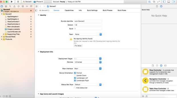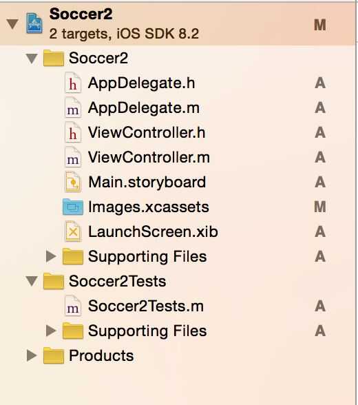 Una vez acabado el montaje de su Xcode obtendrá una pantalla con tres ventanas. En el extremo izquierdo será el nombre de su producto y a continuación desea buscar Main.storyboard y el tercero último archivo con los archivos auxiliares. Después de hacer clic en el archivo que desea haga clic en el main.m