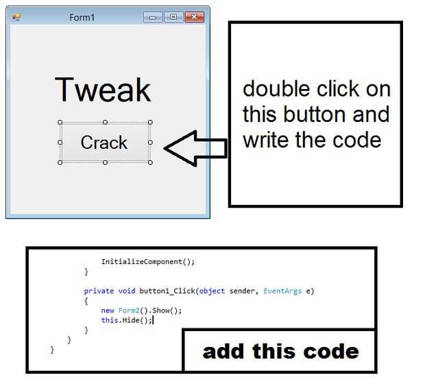 ahora dirígete a la forma 1 y haga doble clic en el botón crack y añadir este código