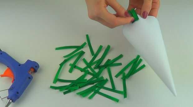 Este fue mi primer intento. He pegado la cinta a un pedazo de cinta y envuelta alrededor del cono.
