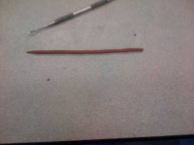 2: tomar arcilla marrón estirar luego corta 2 piezas pequeñas para las cejas ahora pegan los ojos en entonces las cejas sobre los ojos