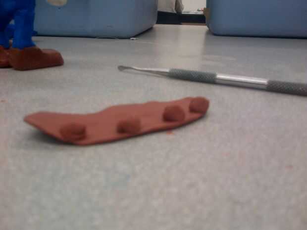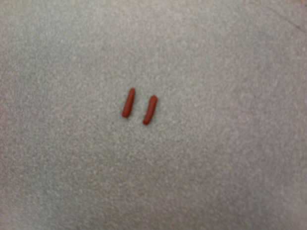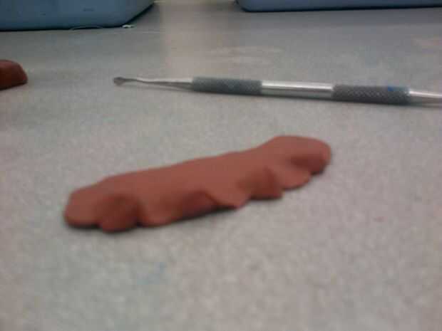 5: entonces rodar hacia fuera arcilla marrón y corte 2 piezas de él para sus tirabuzones