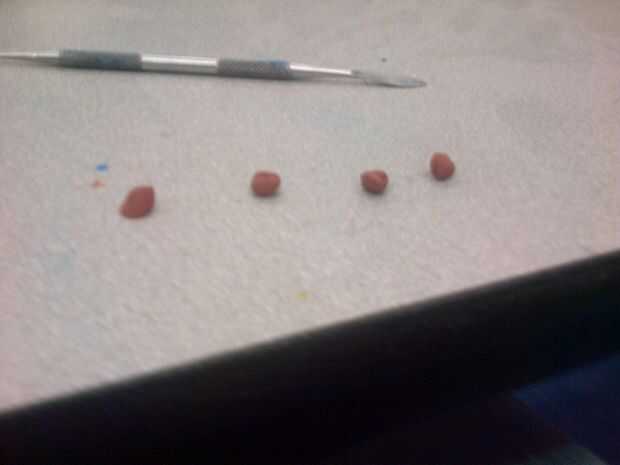 3: tome 4 bolas y uniformemente colóquelos aparte en el borde de la arcilla plana marrón