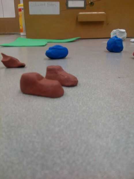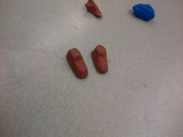 2: ahora una de las bolas y formar en forma de zapato como en las fotos y hacer lo mismo a la otra bola