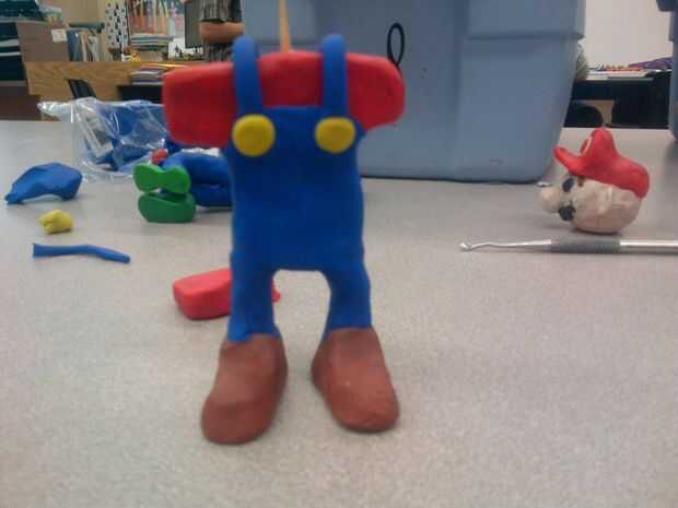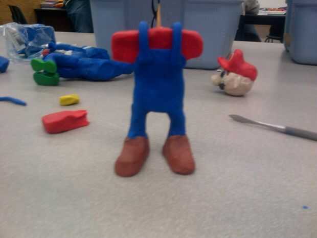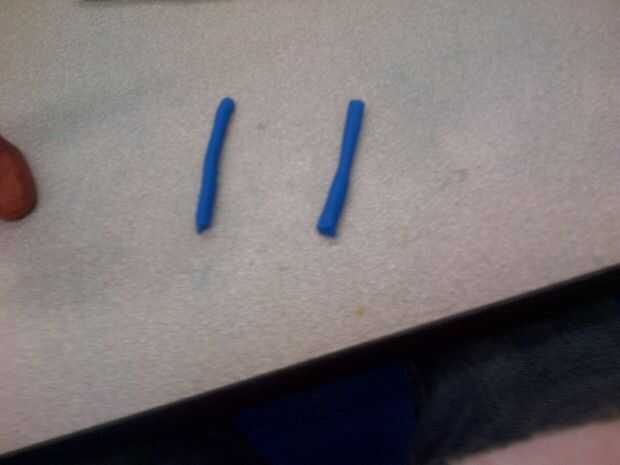 3: tomar las dos piezas de arcilla azul que acaba de hacer y aplicarlas al cuerpo como se muestra en el cuadro 3 y 4