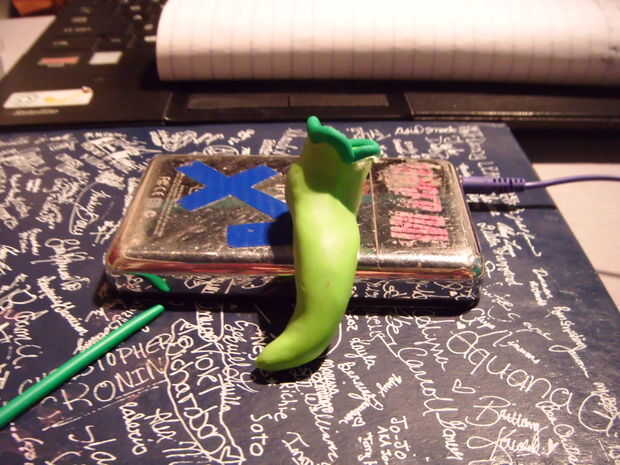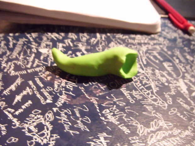A continuación tomé el verde de la banda en la parte superior de la aleta y había rodado hacia fuera hasta que fue una larga "cadena de". Entonces lo tomó y había colocado en la parte superior de la cola y hacia abajo con una selección de diente por lo que quedaría.