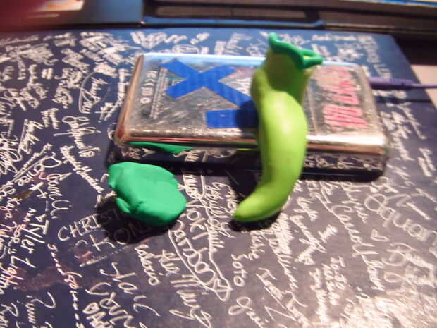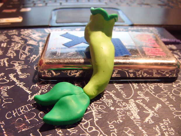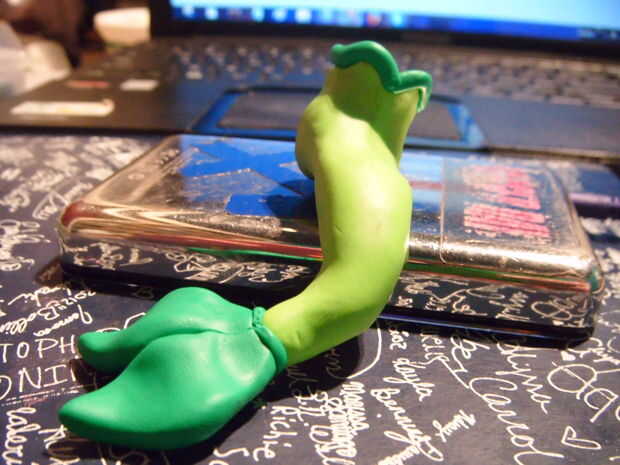 Después de tomé un poco de la verde y envuelto alrededor de la parte donde la cola y la aleta se reunieron por lo que se podía ver esa línea ya.