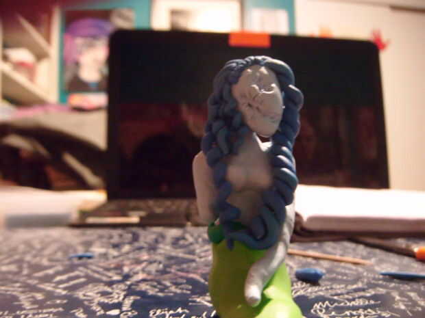 Cuando eran la longitud que quería el pelo que envuelto la arcilla alrededor de una selección de diente por lo que sería rizar lo que quería. Después me puse a moldear el camino quería que empuja un extremo en la cabeza con una selección de diente, lo hice con cada pedazo de cabello hasta que su cabeza estaba cubierta.