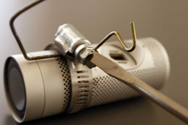 Apriete la abrazadera de la manguera lo suficiente como para asegurar la armadura a la cámara. No apriete demasiado o puede quebrar el cuerpo de la cámara.