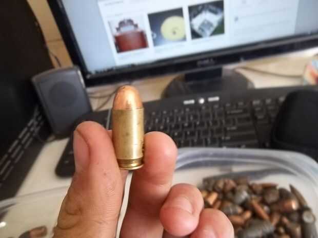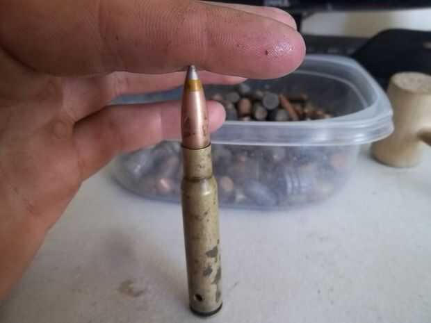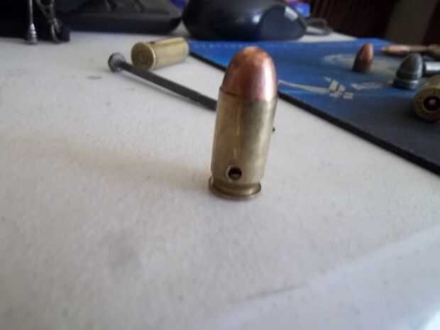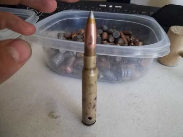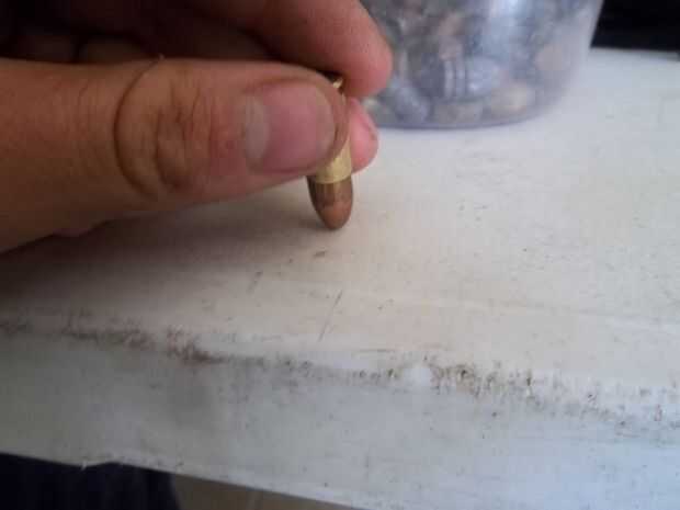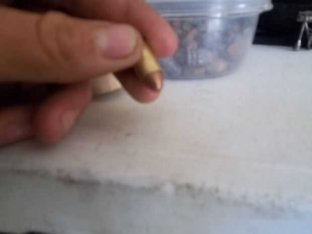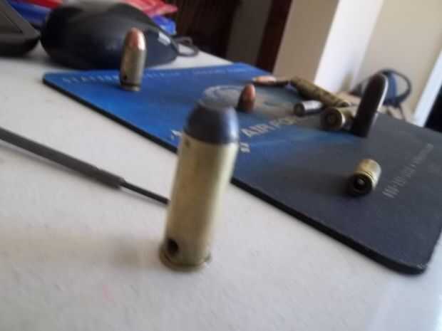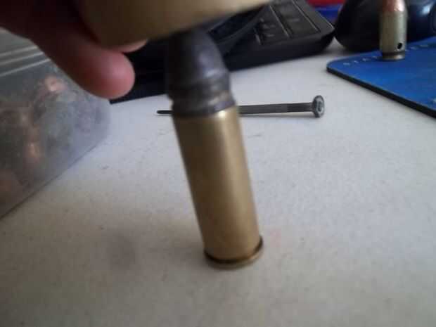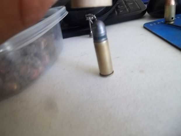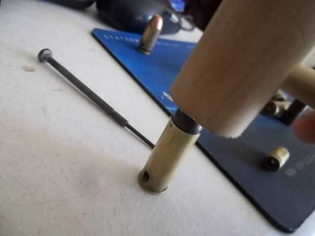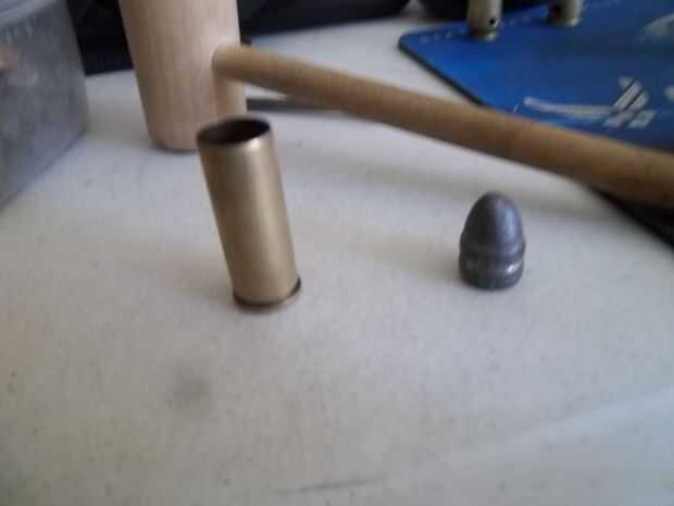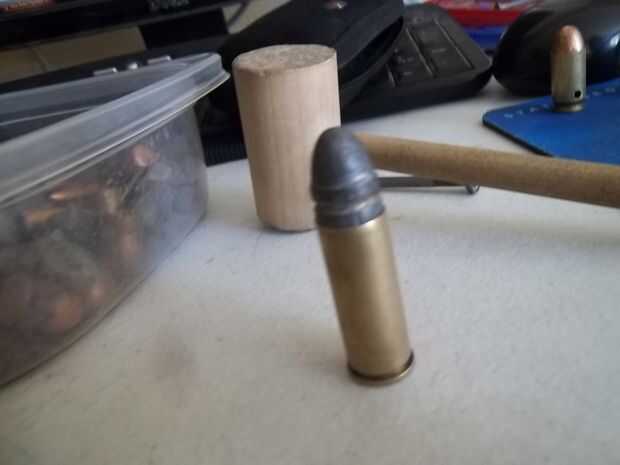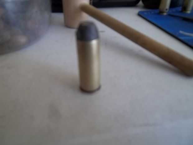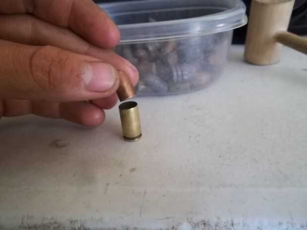 next to add the bullet take the bullet and shell put them together hammer softly if needed