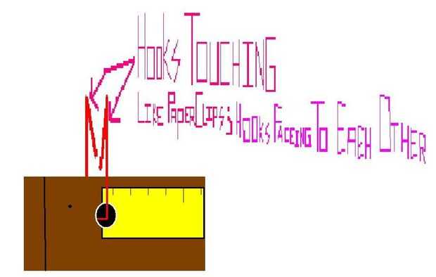 --> los ganchos están perfectamente en línea ahora uno al otro para que usted puede poner un aro (como llavero) entre los ganchos (como cuando pones un clip de papel en papel) y después el aro en los dos ganchos, girar el aro para que quede perpendicular a ambos ganchos y encaja perfectamente en ambos ganchos