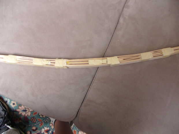 Luego hacia el arco. Necesita sus palitos, pegamento para madera y cinta. Tome su primer palito y pegar juntos superpuestos. Luego, deje que todo seque. Entonces usted necesita apenas comienzo añadiendo palitos con cinta en los puntos de weekest y donde pueden doblar más para reforzarlo.