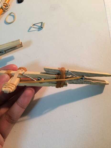 Cómo hacer una ballesta de accionado de goma(Ver Video)Este mini ballesta se hizo del mini arco en mi último video.El arco original es modificado fácilmente para crear esta ballesta. Puede ajustar la potencia de la ballesta cambiando simplemente haci