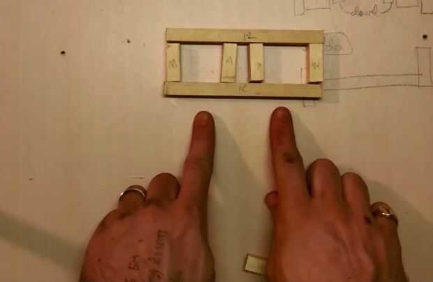 En primer lugar, tomar las piezas de 2 x 12cm y use un lápiz y una regla para marcar 2 puntos 2,7 cm en cada extremo.