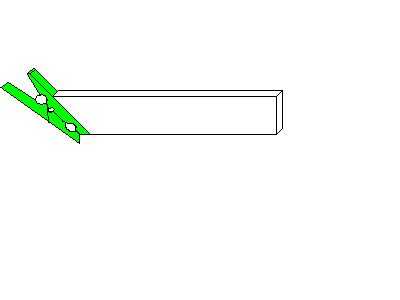 Desmontar la pinza y coloque la parte inferior (madera) para el ángulo de 45 grados para que la punta sólo borra el borde. Uñas en este. Luego poner todas las piezas de la pinza para la ropa y tu listo para disparar.