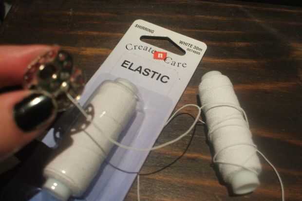 Enrosque la aguja con hilo regular e instalar la bobina ahora roscada con elástico.