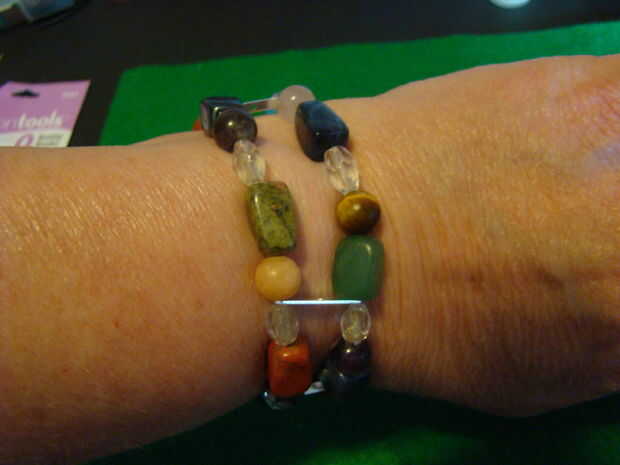 Envolver alrededor de la muñeca prevista y ver cómo se ve. Si no te gusta, restringido en un nuevo patrón. Una vez que lo "hecho", un nudo apretado cuadrado en los dos extremos de la cadena. Cortar los extremos cerca del nudo y poner una gota de pegamento en el nudo, esto evitará que el nudo desata. Deje que se establece durante un minuto.