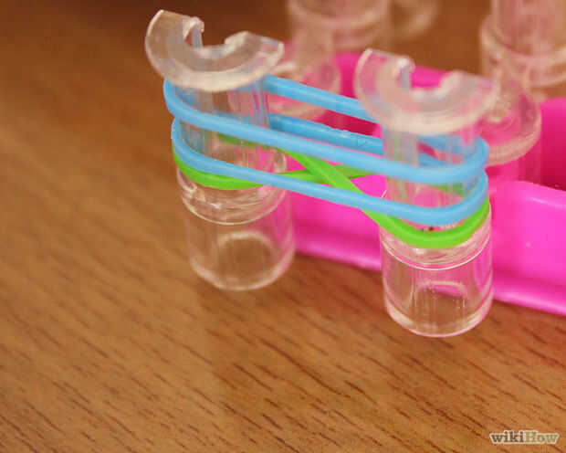 Paso 1: Obtener su material Para hacer una pulsera de telar, se necesita un telar, una herramienta de selección, una "S" o un clip de "C" y su elección de gomas de colores.Paso 2: Iniciar aplicando bandas de goma Coloque uno de su esti
