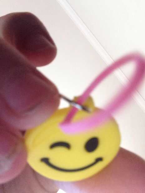 Para poner una banda de goma en el gancho en el encanto. Justo pone la goma en el dedo y repita el proceso.