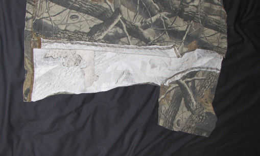 Así pues, toma tus tijeras y corte en el extremo del dobladillo. Usted quiere el dobladillo en el pañuelo, para no cortar, o tienes alguna costura que hacer. Corte el lado, alrededor de la manga (manteniendo el dobladillo!) y alrededor del cuello (manteniendo el dobladillo!). Lo que has hecho es quitar la parte delantera, mangas y cuello de la camisa.