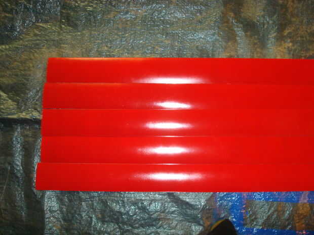 - Ponen el grupo de persianas (siete para el rojo, seis para el blanco) en una lona o diario (o no, dependiendo de si usted no se preocupa por conseguir pintura en lo que las persianas estén apoyados sobre mientras pintarlos).