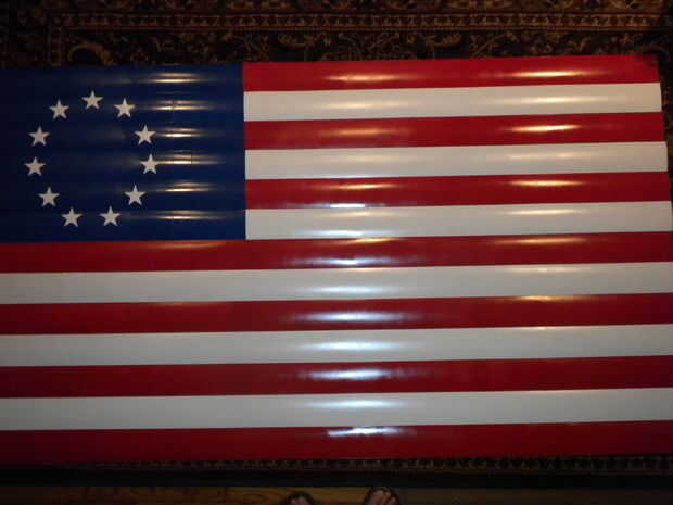 Puse la placa en el centro de la Unión (bueno, no exactamente en el centro, era más como 6" centro como yo le escondo el primer 6" detrás de la Valencia) y luego poner las estrellas alrededor de ella. Desafortunadamente, puesto que había 13 estrellas, no era tan fácil como trazar una cara de reloj, pero con un poco de ajuste aquí y allá, pronto tenía el diseño que quería.