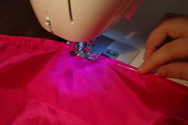 Coser un camino alrededor de los 3 fuera de los bordes de la bandera, asegurándose de que las esquinas son más seguras. Continuar por otro camino paralelo a la primera de costura.