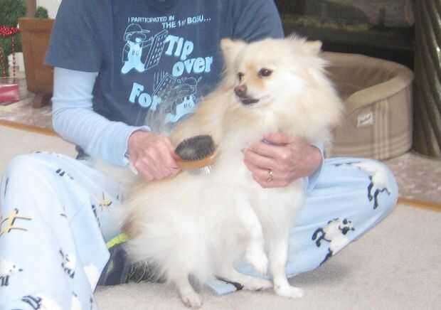 Utilice el cepillo de perro en el perro blanco a reunir suficiente pelo de su barba. Trata puede ayudar a obtener la cooperación de perro. Lo hicieron en mi caso.